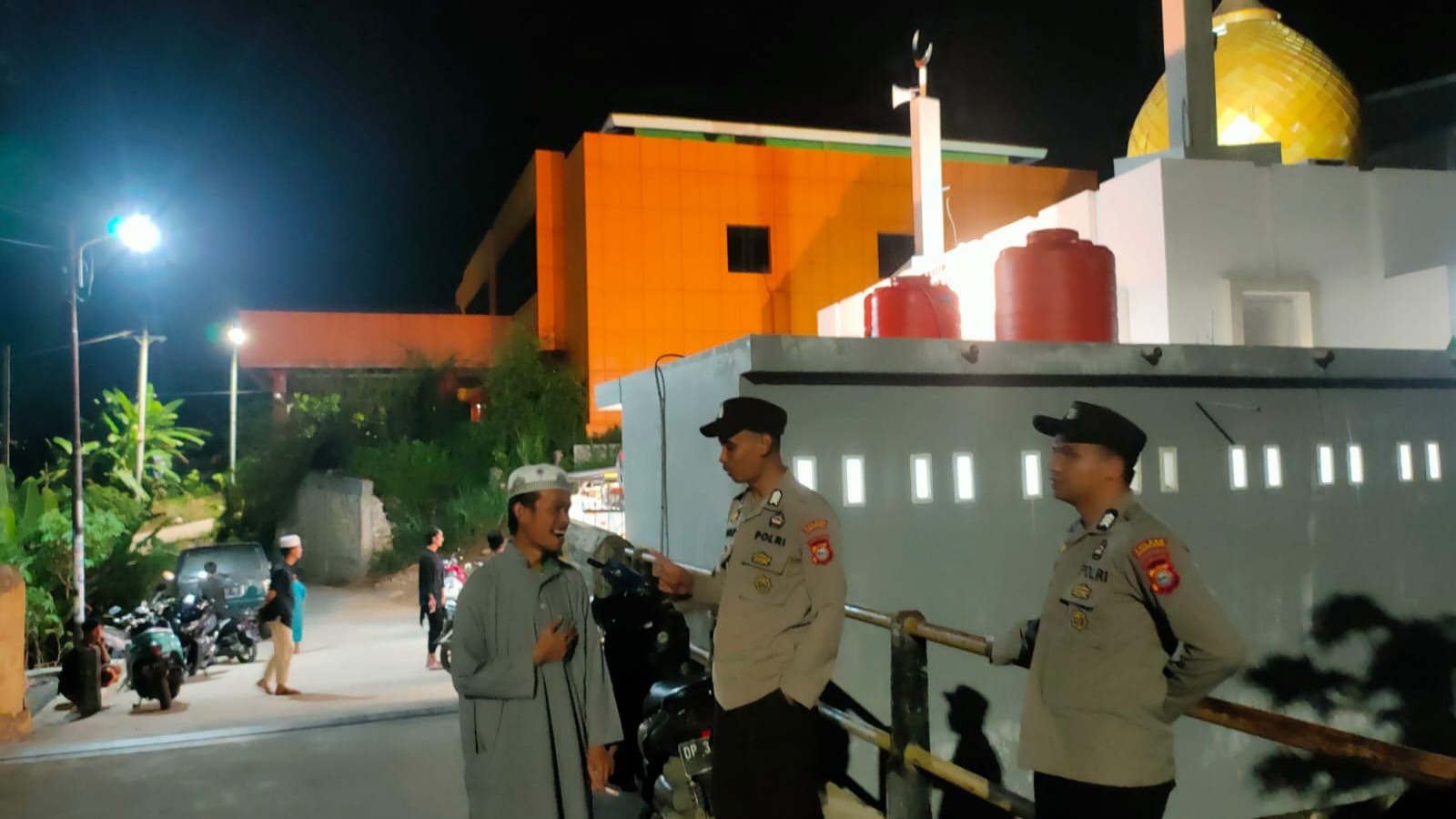 Wargata.com, Sulsel - Personel Polsek Alla, BRIPKA Agus Priyanto dan BRIGPOL Suhardiman melaksanakan pengamanan tarawih bulan suci ramadhan 1445 H sembari memberikan himbauan kamtibmas kepada masyarakat di Belajen Kelurahan Kambiolangi, Kecamatan Alla, Kabupaten Enrekang, Selasa, (12/03/2024).